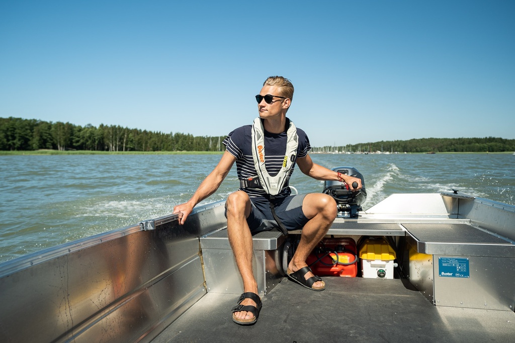 Kahvaohjattava Buster XS on sisarensa XSr:n (rattiohjaus) tavoin uutuusvene, joka sopii koko perheelle. Ketterä ja helppokäyttöinen Buster XS on oman koko- ja painoluokkansa parhaimmistoa, ja se palvelee niin yhteysveneenä, kuin kalastuskaverinakin. Se on vakaa ja miellyttävä ajaa leveän vesilinjansa sekä tarkkaan suunnitellun pohjan V-kulman ansiosta. Mukavasti kaasuun vastaavan Yamaha F20GEPL-perämoottorin avulla vene lähtee hyvin liukuun, ja on ajotuntumaltaan kevyt ja vaivaton. Peräpenkki on suunniteltu U:n muotoiseksi, jotta kuljettajan ajoasento on ergonominen riippumatta siitä, kummalla kädellä venettä ohjaa.