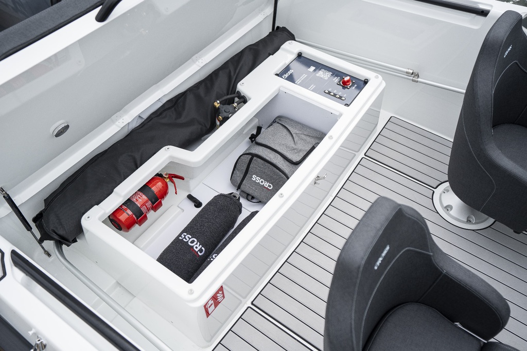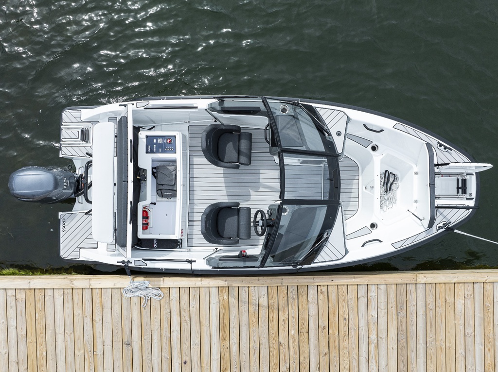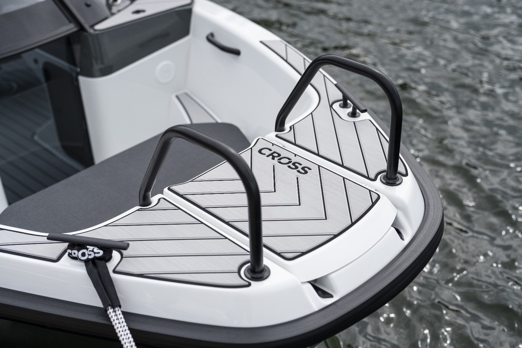 Uuden Cross 55 BR:n innovatiiviset ratkaisut viitoittavat suuntaa Crossvenemalliston tulevaisuudelle. Moderni ja tyylikäs ilme yhdistyy käytännöllisiin yksityiskohtiin, jotka tekevät veneilystä mukavampaa. Cross 55 BR on vakaa vene ja tuntuu kokoaan isommalta leveän rungon ansiosta. Kuljettajan ergonomialla on ollut keskeinen rooli tuotekehitystyössä. Sen tuloksena on uudenlainen konsoli, joka takaa parhaan mahdollisen näkyvyyden, mukavuutta jakäytännöllisyyttä. Uuteen Cross-tyyliin kuuluu nyt myös mustat karmit, kaiteet ja knaapit.