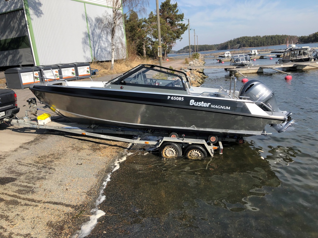 Yhdellä omistajalla ollut, keväällä 2019 käyttöönotettu ja erittäin hyvin pidetty kuomullinen Buster Magnum ja Yamaha F200 moottori.