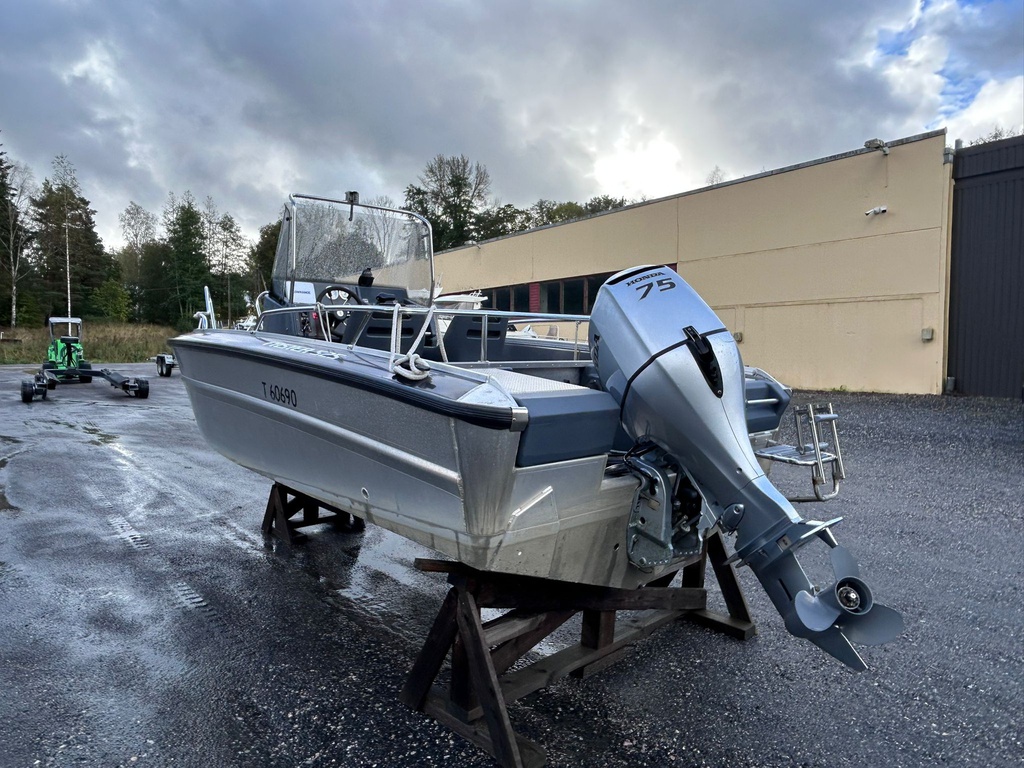 Todella siistikuntoinen ja vähän käytetty Faster 525 vuodelta 2013, varustettuna luotettavalla Honda BF75 -perämoottorilla (75 hv, nelitahti).